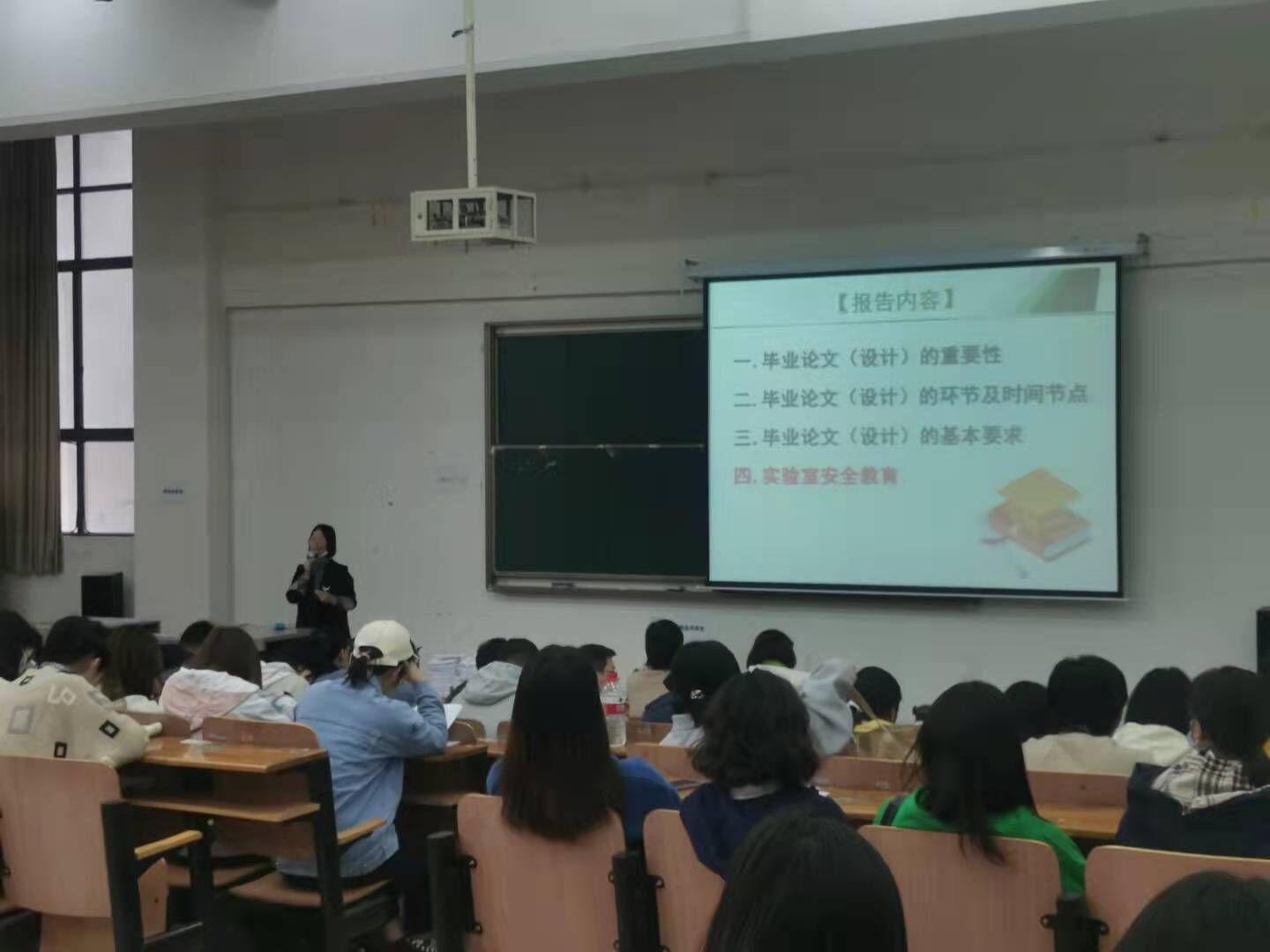 会议伊始,王影老师为大家梳理了毕业的重要时间节点,并向大家介绍了关于毕业的基本条件,提醒部分同学们进行查漏补缺,尽快修满学分,争取达到获得毕业证学位证的要求,顺利拿到两证。紧接着,翟淑红老师详细介绍了关于毕业论文进实验室的一些前期准备工作以及在做实验过程中的相关注意事项,尤其强调实验室的安全,并提醒大家在找工作的同时要合理安排时间准备毕业论文,能够保证将其按期向学院递交。