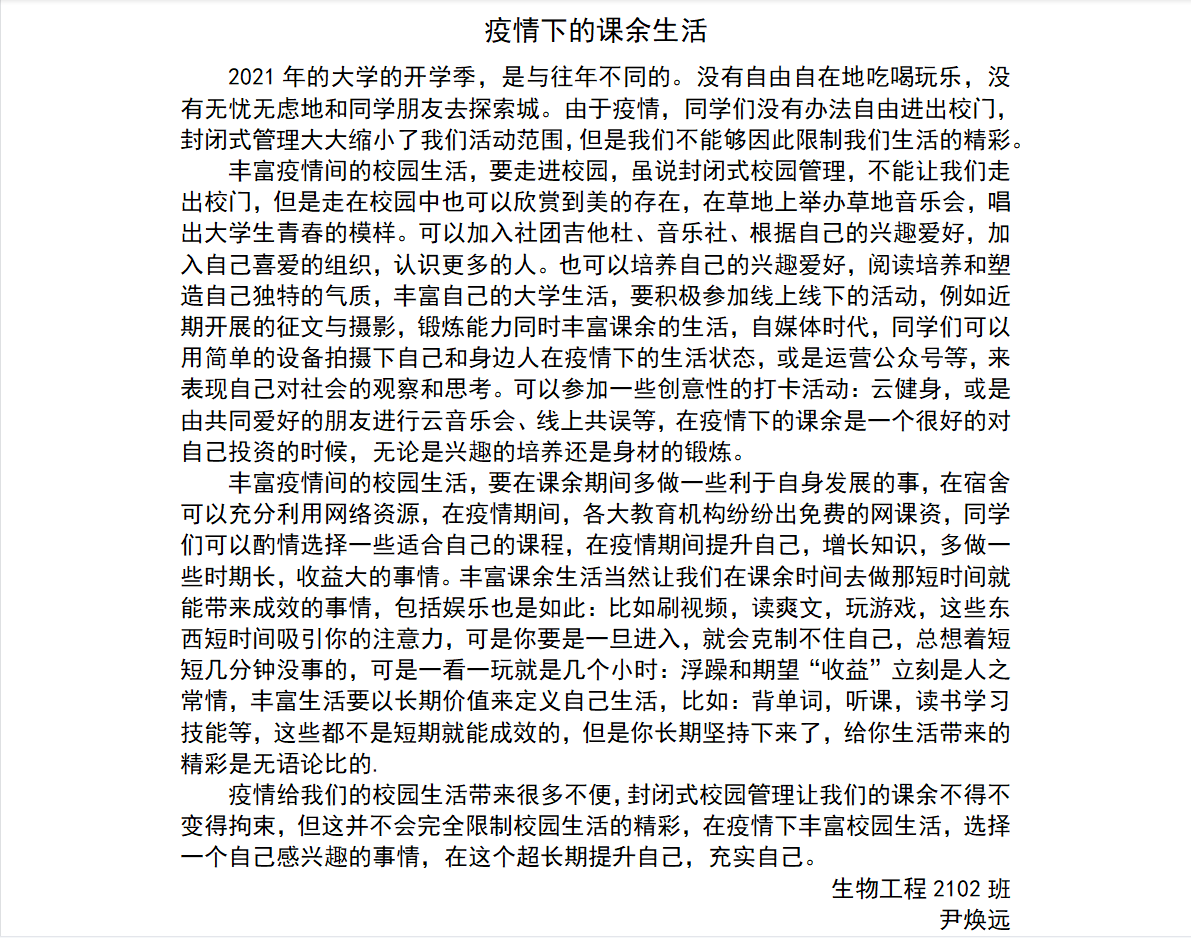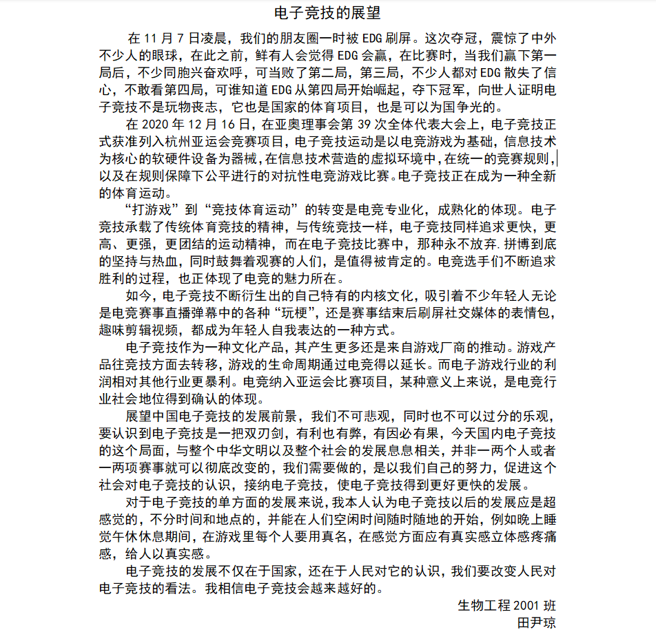 (通讯员 彭家琪)为增强我院学子爱党爱国精神,展现当代大学生的风貌和优良品质,丰富学生的课余生活。11月我院心理部围绕着“电子竞技的展望”、“疫情下的课余生活”和“勿妄自菲薄”三个主题作为了11月的团员日记内容,经最终择优筛选,共选出三篇优秀团员日记。