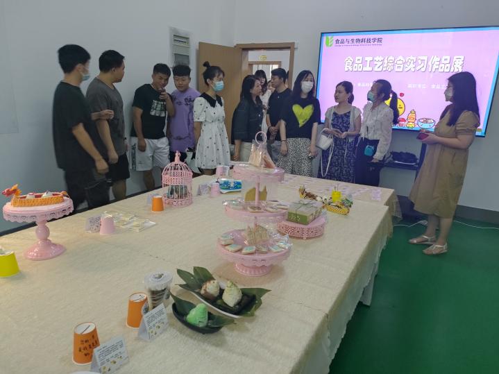 (通讯员 卢静静)6月14日上午10点,6776永利集团2019级食品科学与工程专业食品工艺综合实习作品展在临湖轩C1049正式举行,共计16组产品参展,学校教务处、兄弟学院及食生院的部分领导和老师观摩了本次展出。